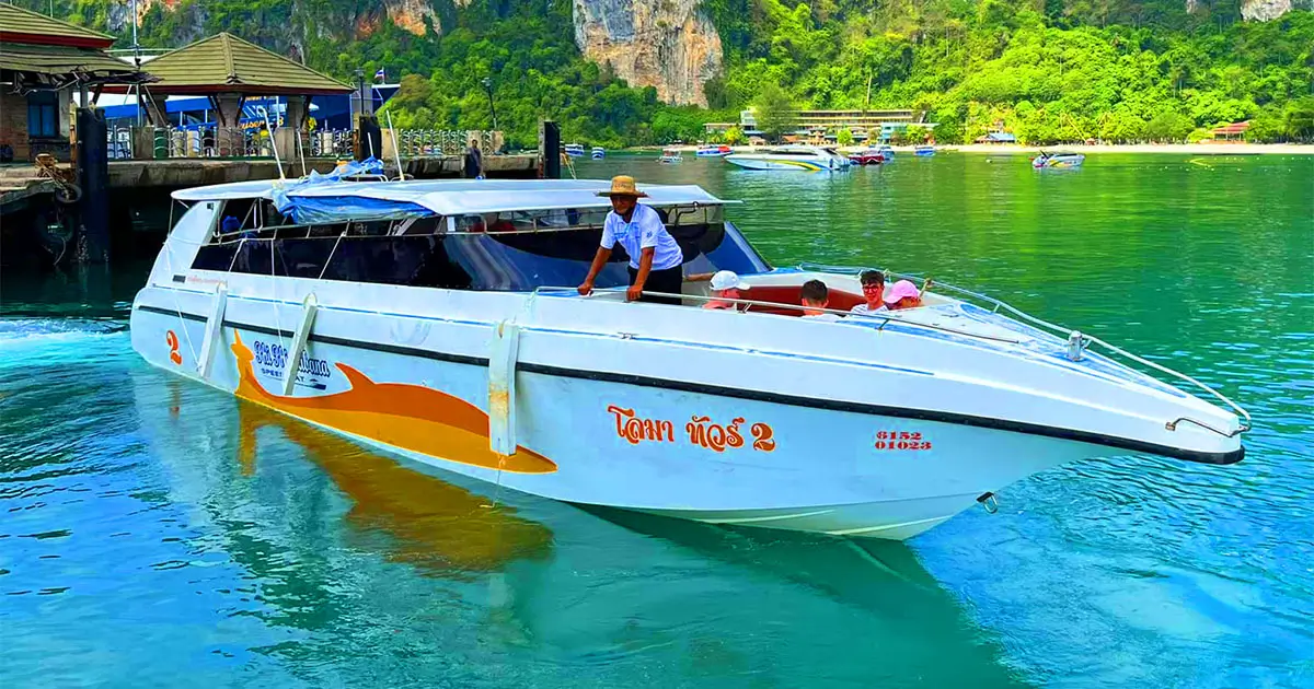 - Speedboat: Perfect for travelers short on time but big on adventure. Skim across turquoise waters with the wind in your hair, reaching Koh Phi Phi in about 1 hour and Koh Lanta in just over an hour—fast, exhilarating, and unforgettable.
